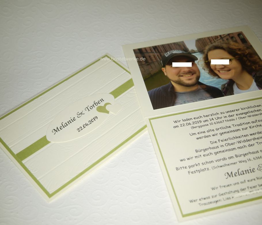 Angelehnt an das Modell von Kathrin und Christian wurde die Einladung für Melanie und Torben an einem gemütlichen Abend zusammen entwickelt.