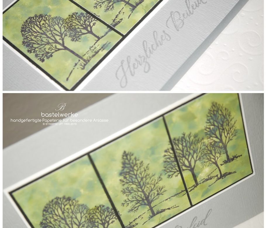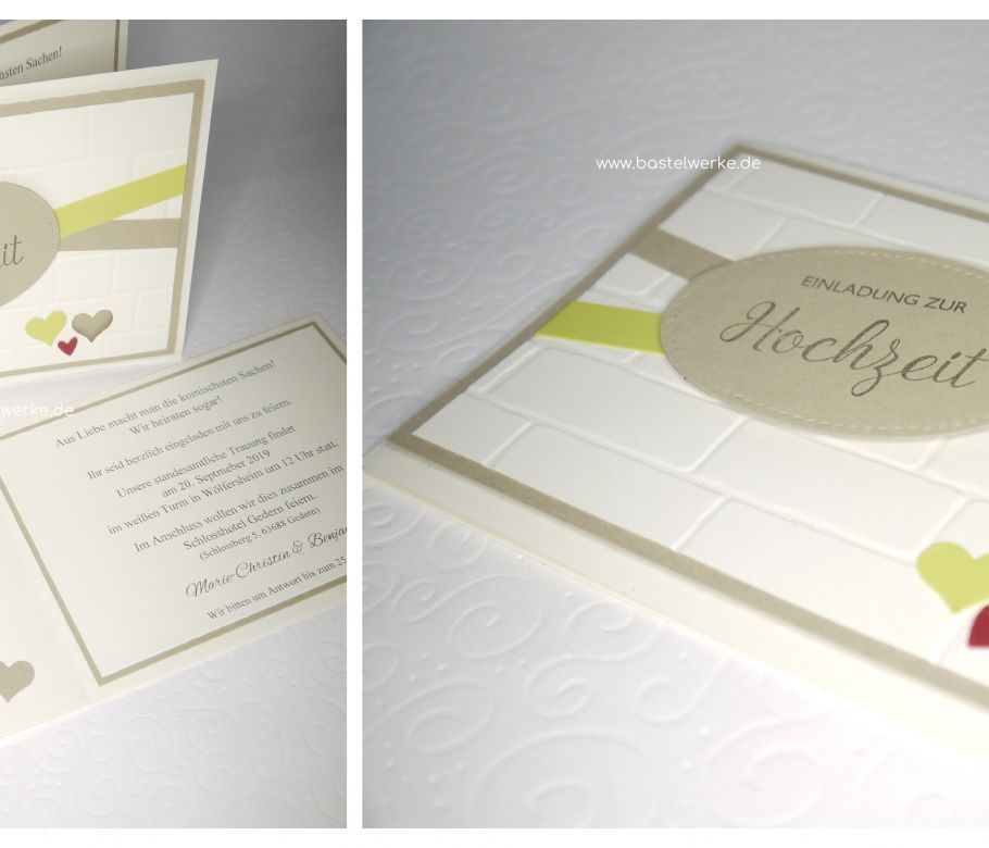 Da das Hochzeitspaar auf einem Schloss heiratet, findet sich ein Gemäuer auch auf der Einladung. Der grüne Streifen stellt zusammen mit dem Herz einen schönen Blickfang dar...