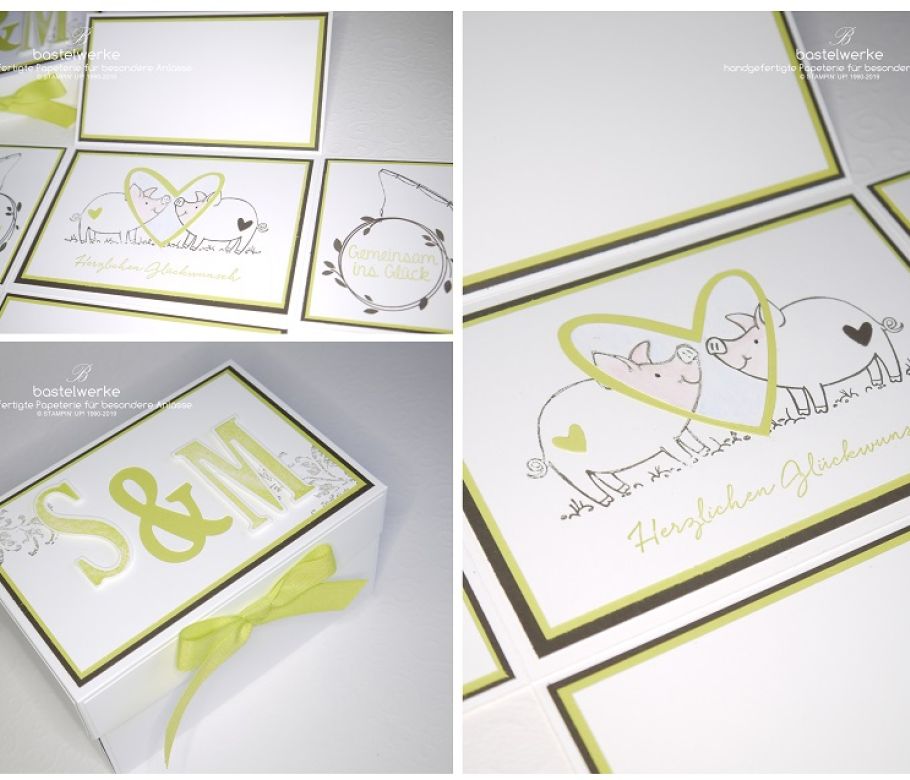 Was schenkt man einem Brautpaar, bei dem die Braut ein Schweinchen-Fan und der Bräutigam leidenschaftlicher Angler ist? Eine personalisierte Explosionsbox, die genau das ve...