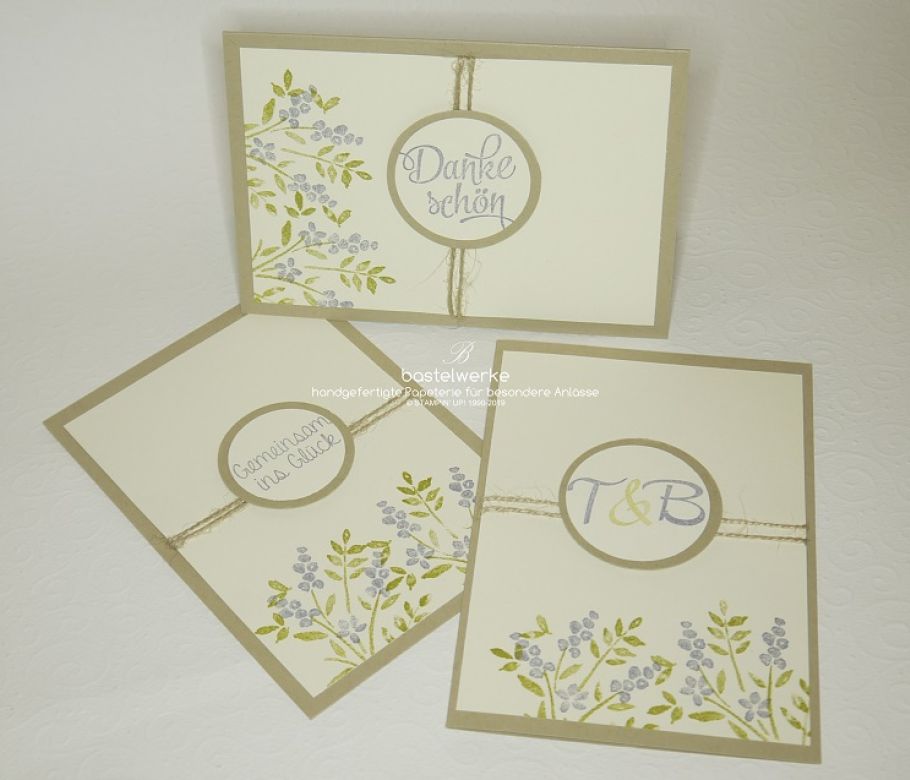 Hier zeige ich euch ein Set zur Frühlings-Hochzeit. Es besteht aus einer mit Save the Date Karte im Postkartenformat (links mit dem Spruch Gemeinsam ins Glück). Der gleiche...