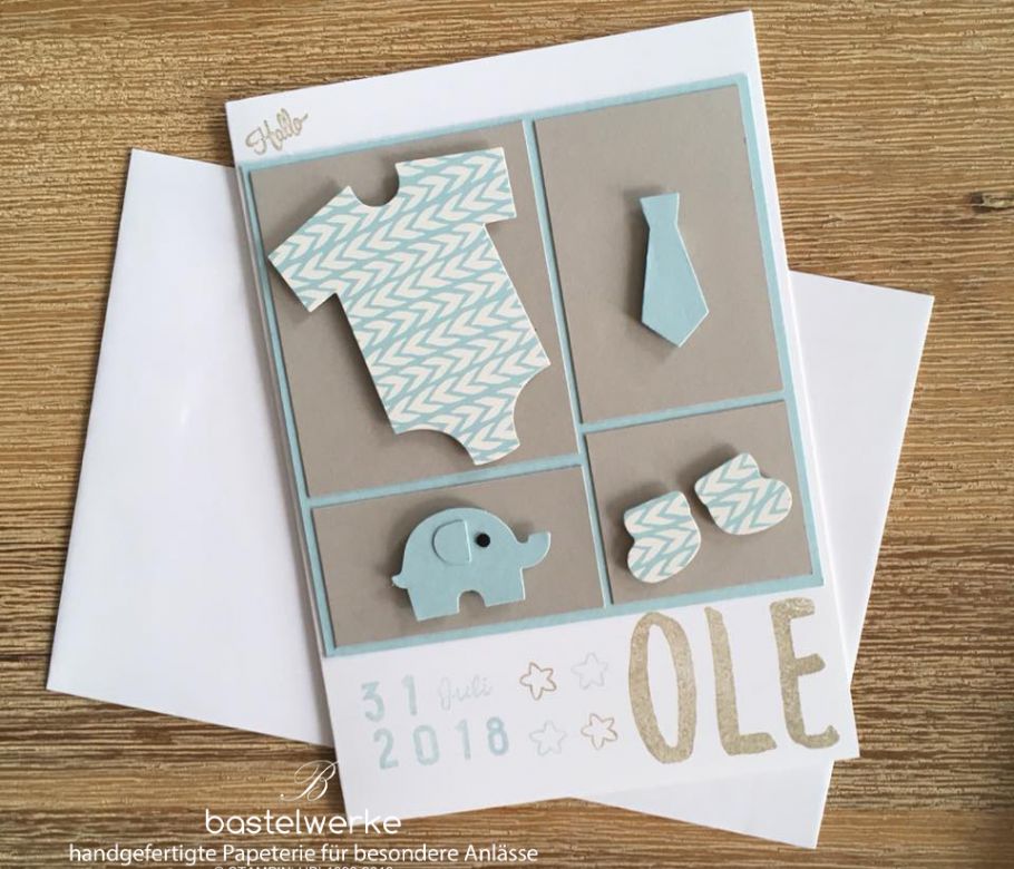 Gestern ging diese schöne Karte über den Verkaufstresen von Bastelwerke Nidda-Harb. Willkommen auf der Welt lieber Ole! Endlich gibt es auch so einen süßen Elefanten von St...