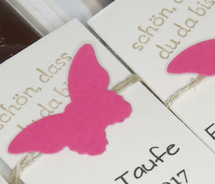 Mit dem Spruch "Schön, dass du da bist!" wurde heute jeder Gast bei der Taufe der kleinen Elli begrüßt. Insgesamt entstanden in diesem Rahmen 40 dieser Riegel, die sich far...