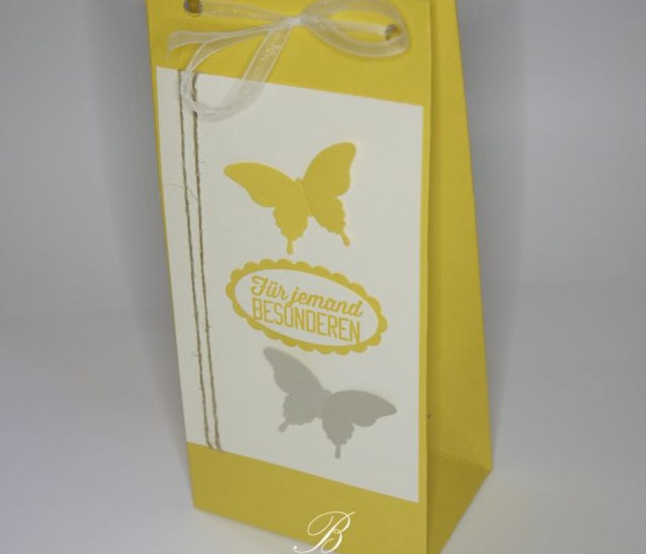 Die Tüte vom 1. Juli führte zu diesem Folgeauftrag. Denn so eine Geschenktüte zum Selberfüllen habe ich im Rahmen eines Geburtstag-Auftrags erstellt. Die Beschenkte war hin...