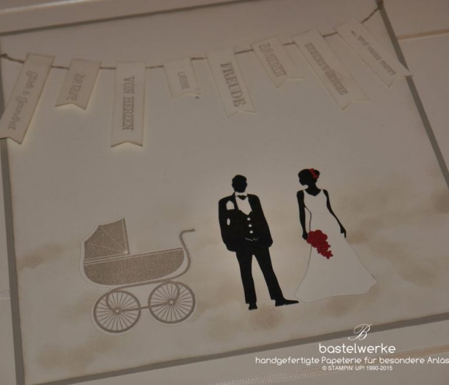Auftragsarbeit für eine Hochzeit mit Taufe. Diesmal handelt es sich um keine Karte, sondern um einen themenbezogenen 3D-Bilderrahmen. Das Passepartout bleibt der Auftraggeb...