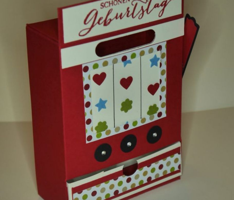 Jackpot am Einarmigen Banditen- das wäre doch ein super Geschenk, oder?. Bei dieser Auftagsarbeit war es der Auftraggeberin wichtig, eine Spielmaschine mit Geldeinwurf zu e...