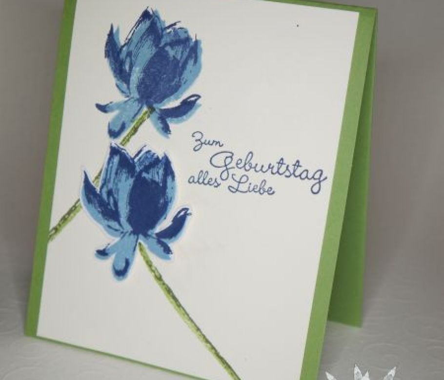Frühlingshafter Gruß zum Geburtstag. Das Stempelset "so froh" stammt aus der Stampin' UP! Sale-A-Bration Broschüre und ist, in meinen Augen, einfach fabelhaft. Weitere Kart...