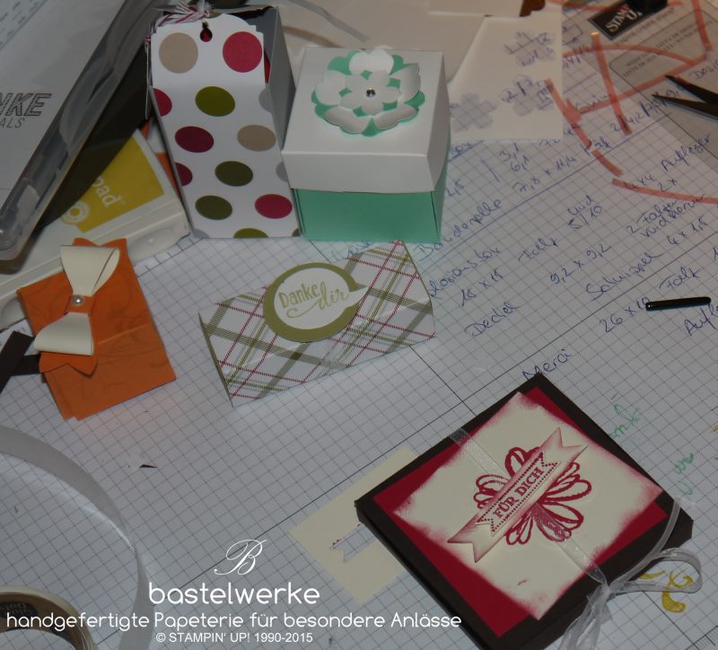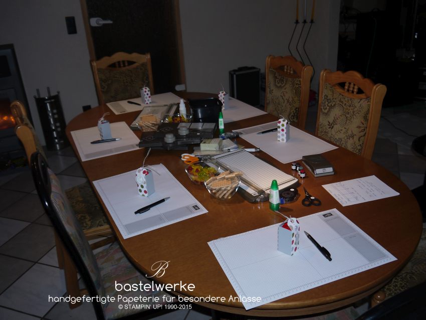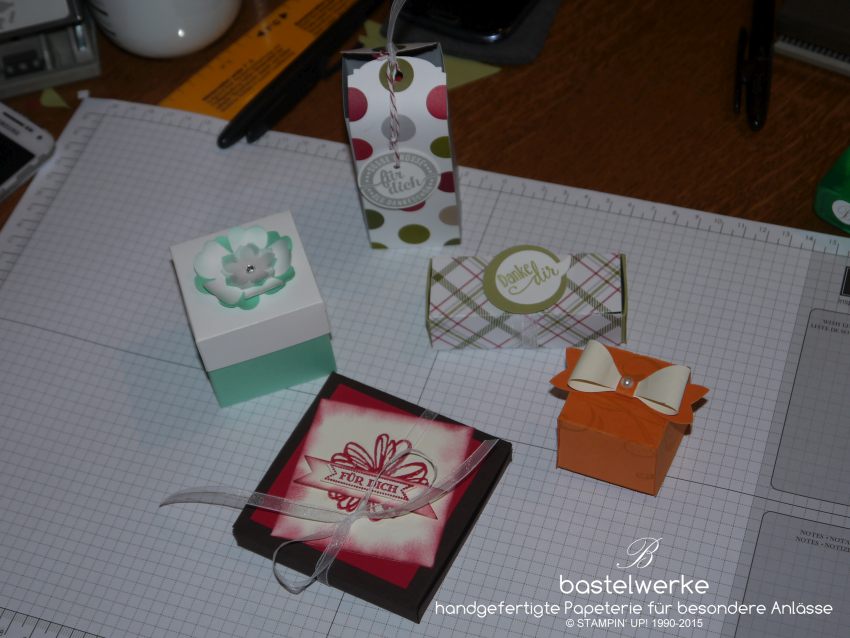 Heute fand mein Workshop zum Thema Gastgeschenke und Freude schenken statt. Dabei habe ich vier kleine Projekte vorbereitet, die ich zusammen mit den Teilnehmer nachgebastelt habe.