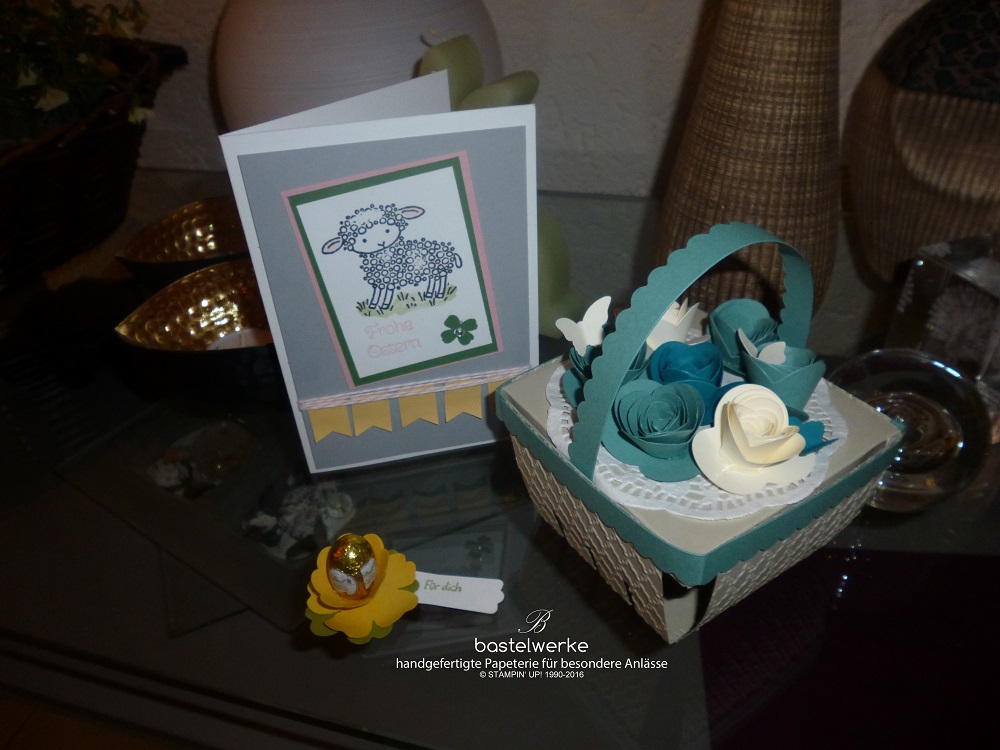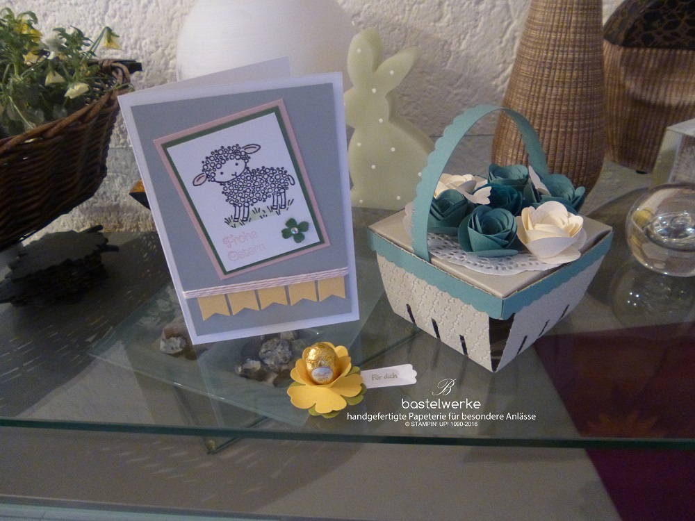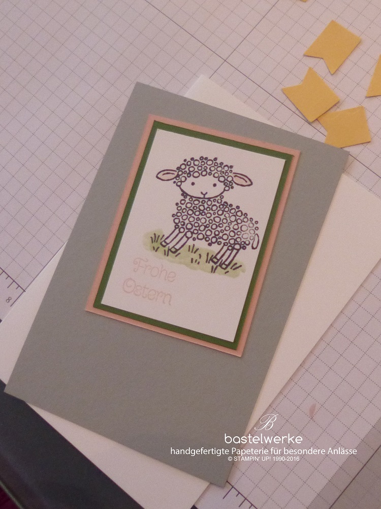 Danach widmeten wir uns einer Osterkarte, mit dem süßen Osterlamm aus dem noch aktuellen Frühling-Sommerkatlog.