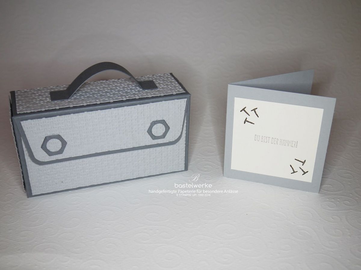 Heute möchte ich euch ein kleines Männergeschenk zeigen: Eine Box in Werkzeugkisten-Optik mit Mini-Karte.