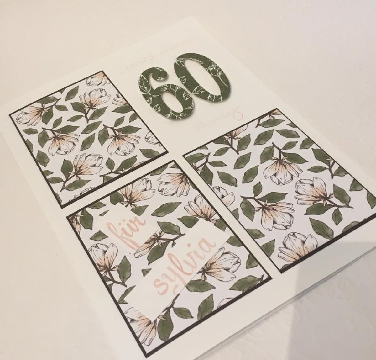 Sylvia wurde letzte Woche 60 Jahre jung und bekam von ihren Arbeitskollegen diese Karte im A5 Format. Wer genau hinschaut sieht den Gruß „Genieß deinen Ehrentag“.