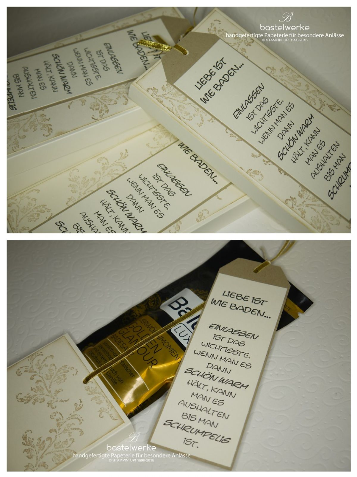 Heute zeige ich euch einen Badezusatz im Vintage-Stil. Gemeinsame Zeit ist so kostbar, genießt sie zusammen. Gönn dir und deinem Partner ein paar ruhige Minuten bei einem gemütlichen Verwöhnbad mit den angenehmen Düften "Golden Glamour" oder "Red Love". Nicht nur zum Valentinstag eine gute Idee.