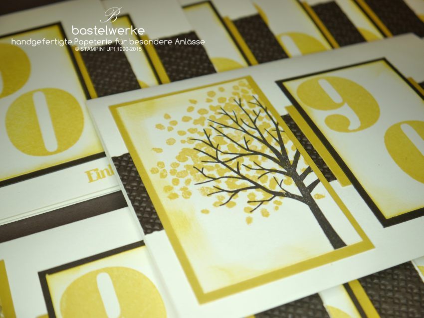 Einladungskarte zum 90. Geburtstag. Als ich dem Geburtstagskind meine Entwürfe vorstellte war die Entscheidung schnell auf den "Lebensbaum" gefallen. Die Karte eignet sich mit einem anderem Spruch auch als entsprechende Glückwunschkarte.