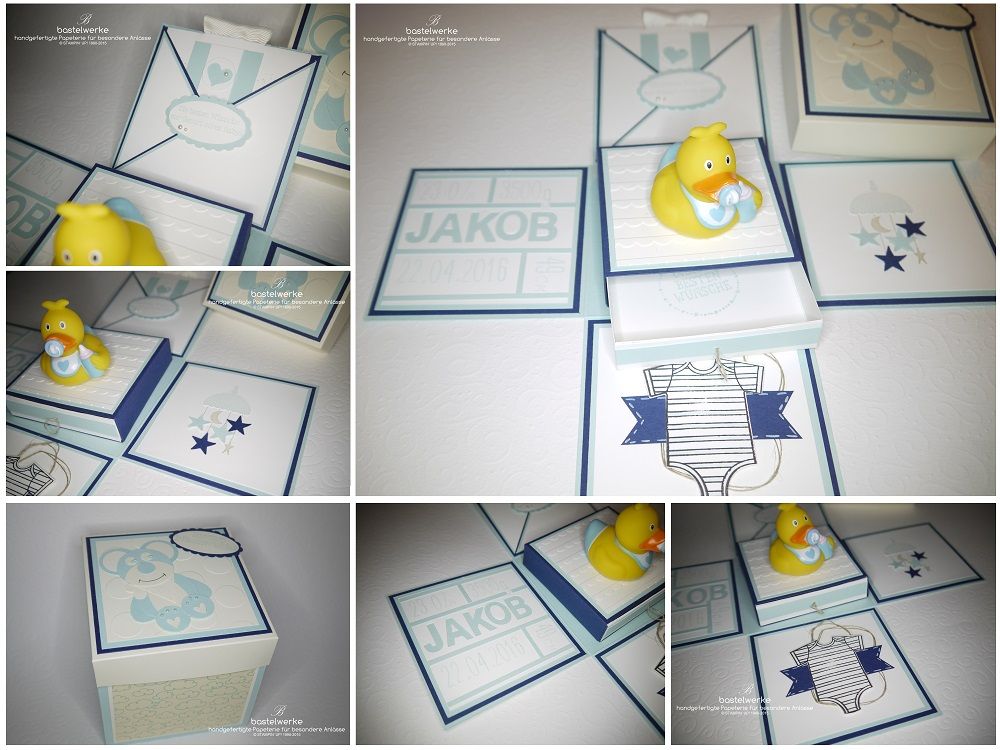 Vor einigen Wochen kontaktierte mich die Auftraggeberin dieser Explosionsbox mit der Frage nach einem Geschenk zur Geburt. Sie wollte etwas haben, was nicht jeder schenkt und gerne auch eine Babyente in das Geschenk integrieren, da die werdenden Eltern diese sammeln. Ich habe mir Gedanken gemacht und gemeinsam konnten wir uns auf eine Explosionsbox einigen.