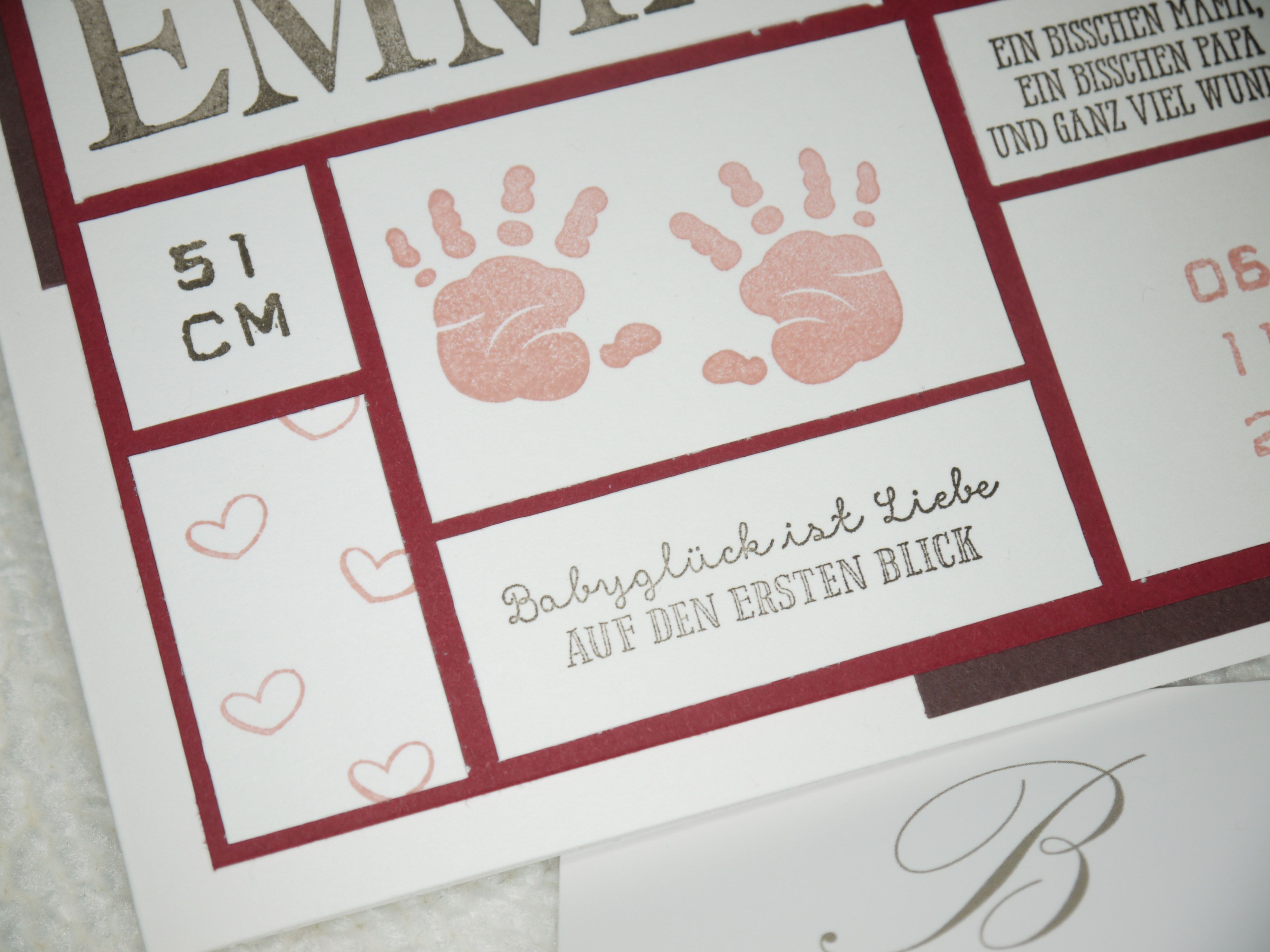 Inspiriert von der Karte für Lene (klick) im Sommer hat mich eine Kundin kontaktiert. Sie wollte gerne eine Karte für Mariella in rosa und pink haben. Dabei sein durften Luftballons, Elefanten, Sterne, Hände und Füße. Und tatsächlich habe ich alles unter einen Hut bekommen.