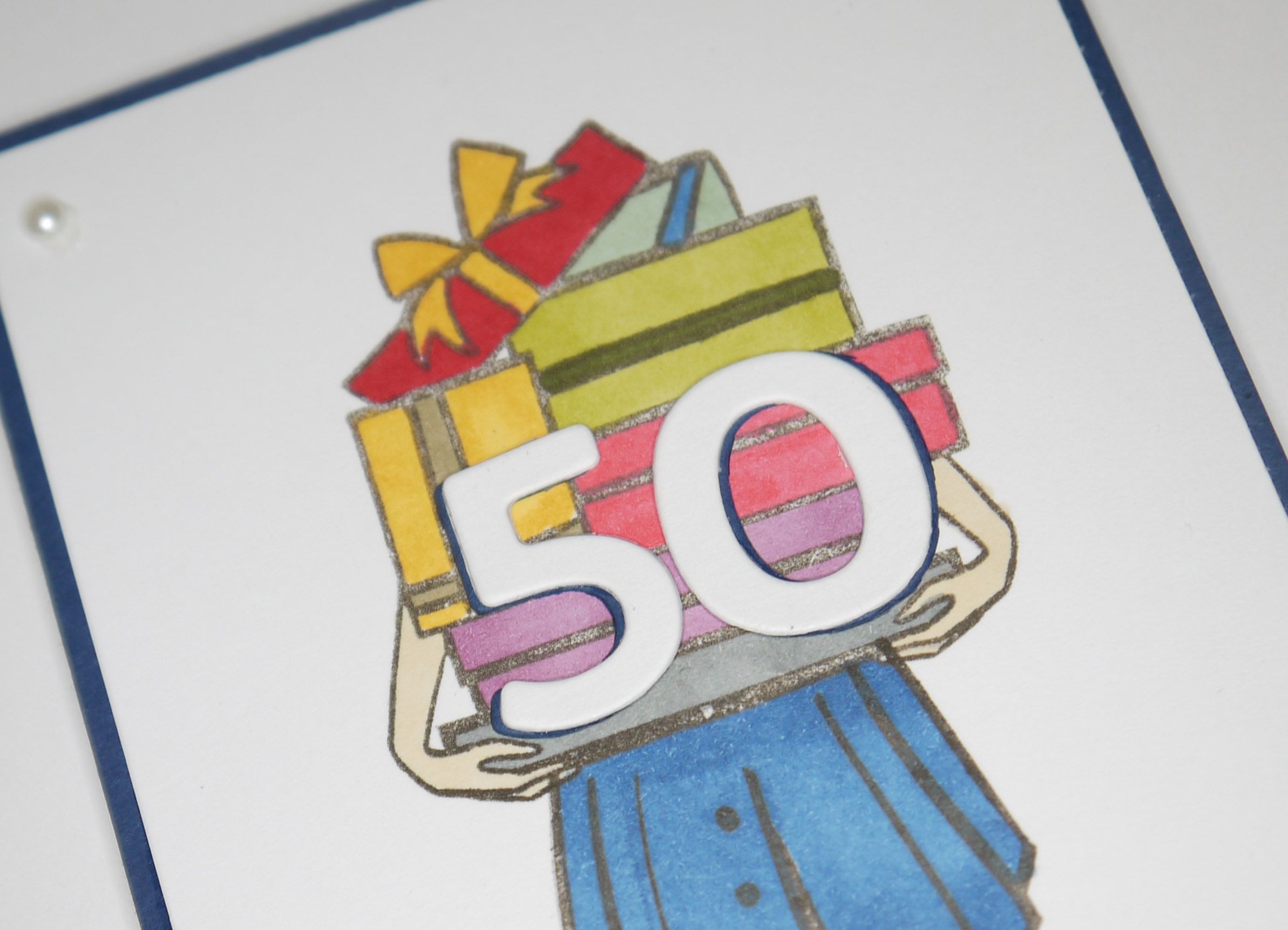 Vollgepackt mit tollen Sachen ging diese Glückwunschkarte zum 50. Geburtstag raus. Das Stempelset Delivering Cheer kam hier zum Einsatz und ich mag es aufgrund seiner großen Vielfältigkeit.