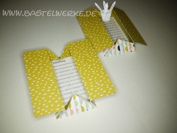 Einladung zum Essen, in einer besonderen Verpackung. Darin befindet sich ein Gutschein, der mit einer Banderole zusammengehalten wird.