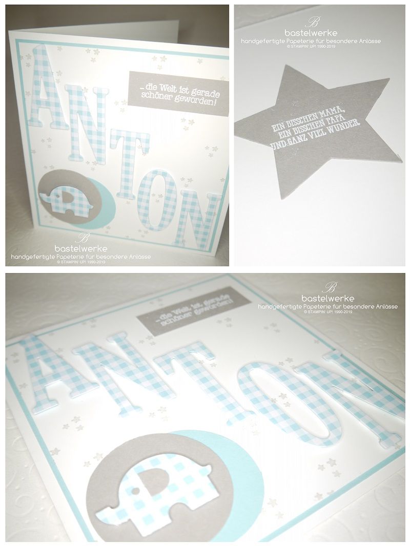 Gestern ging diese schöne Karte über den Verkaufstresen von Bastelwerke Nidda-Harb. Willkommen auf der Welt lieber Ole! Endlich gibt es auch so einen süßen Elefanten von Stampin' UP! und er wird noch einige personalisierte Geschenke und Glückwunschkarten für Babys und Kinder bereichern.