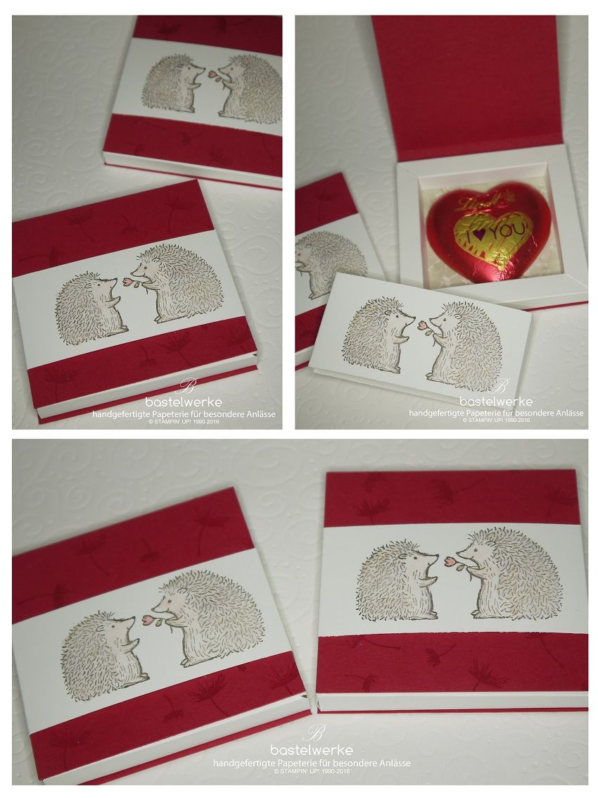 Nachdem Weihnachten vorbei ist steht schon bald ein etwas anderes Fest der Liebe an. Dazu habe ich diese Verpackung mit vier Riegeln und dem Spruch "Mein Herz schlägt für dich" hergestellt. Das Herz verschließt die Box dabei auf eine ganz besondere Art.