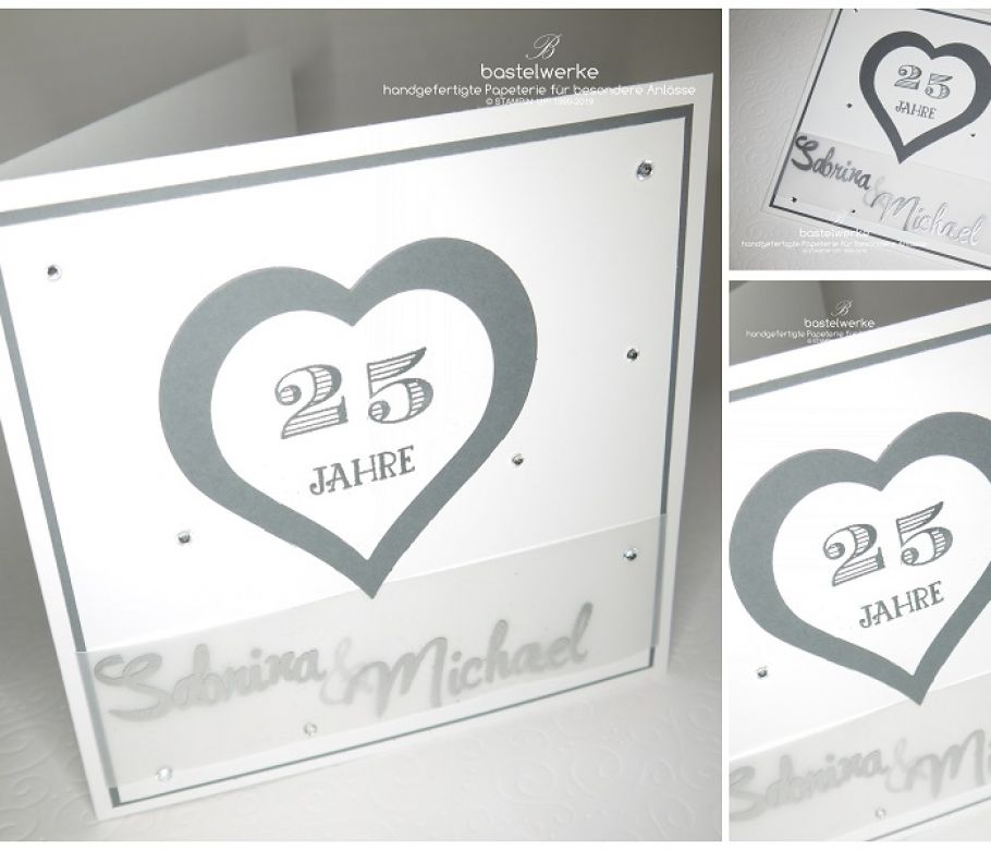 Da das Hochzeitspaar auf einem Schloss heiratet, findet sich ein Gemäuer auch auf der Einladung. Der grüne Streifen stellt zusammen mit dem Herz einen schönen Blickfang dar...